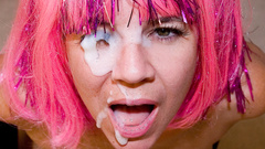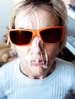 Very thick loads on womans face